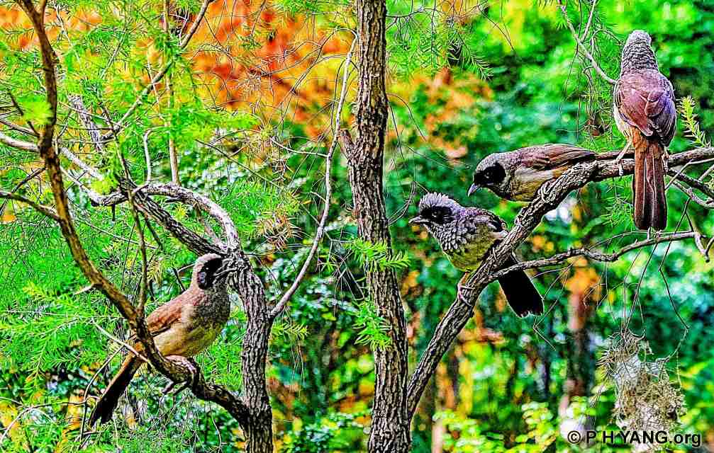 Masked Laughingthrush has a conspicuous black mask on its face. It favours forest