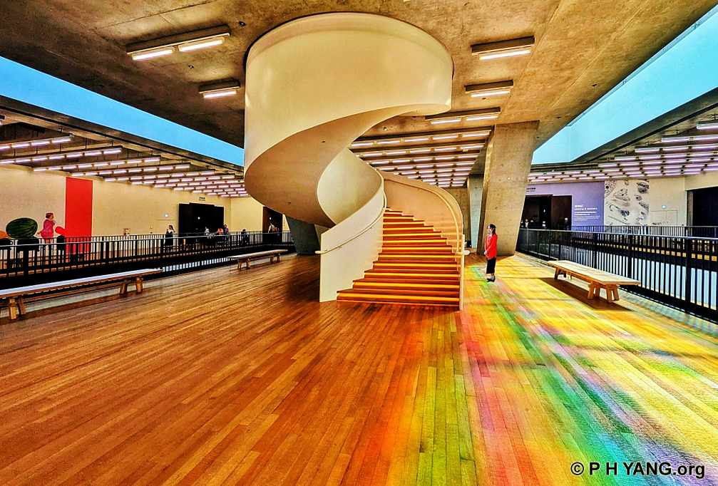 at M+ Museum. This multicoloured effect appears through sunlight filtering down from a glass