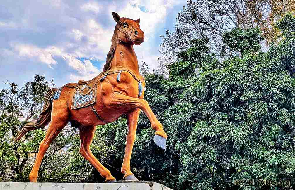 A horse statute guarding the entrance of Houli Equestrian, a public horse