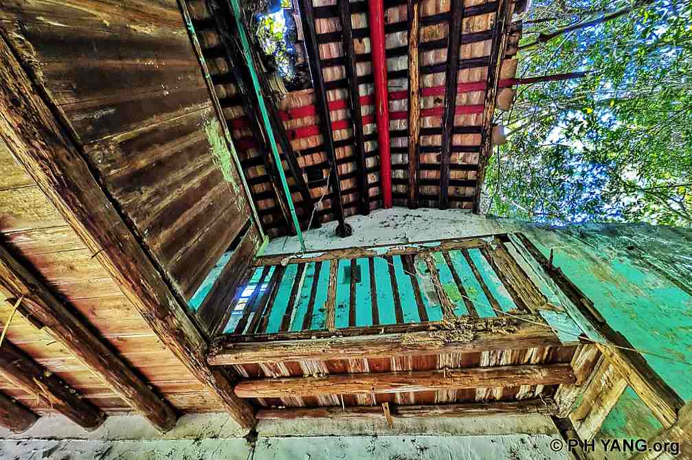 The eaves still retain carved porcelain decorations. Notably, the wooden