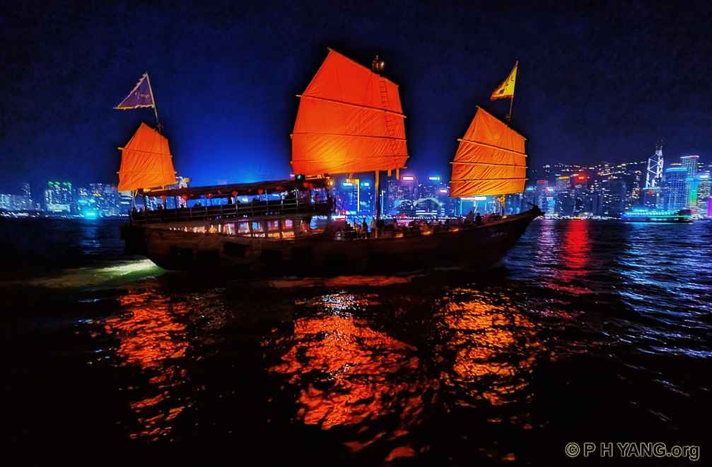 Aqua Luna II is a traditional Chinese junk offering cruise in Victoria Harbour.