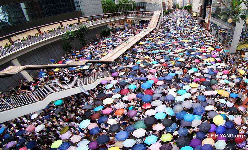Thousands led by Legislator Eddie Chu protested peacefully against