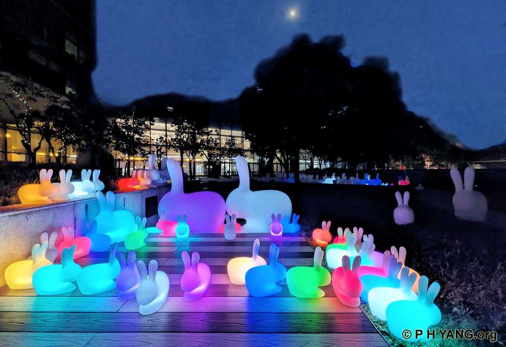 About 200 glowing rabbits, that change colour are on display at Cyber Plaza,