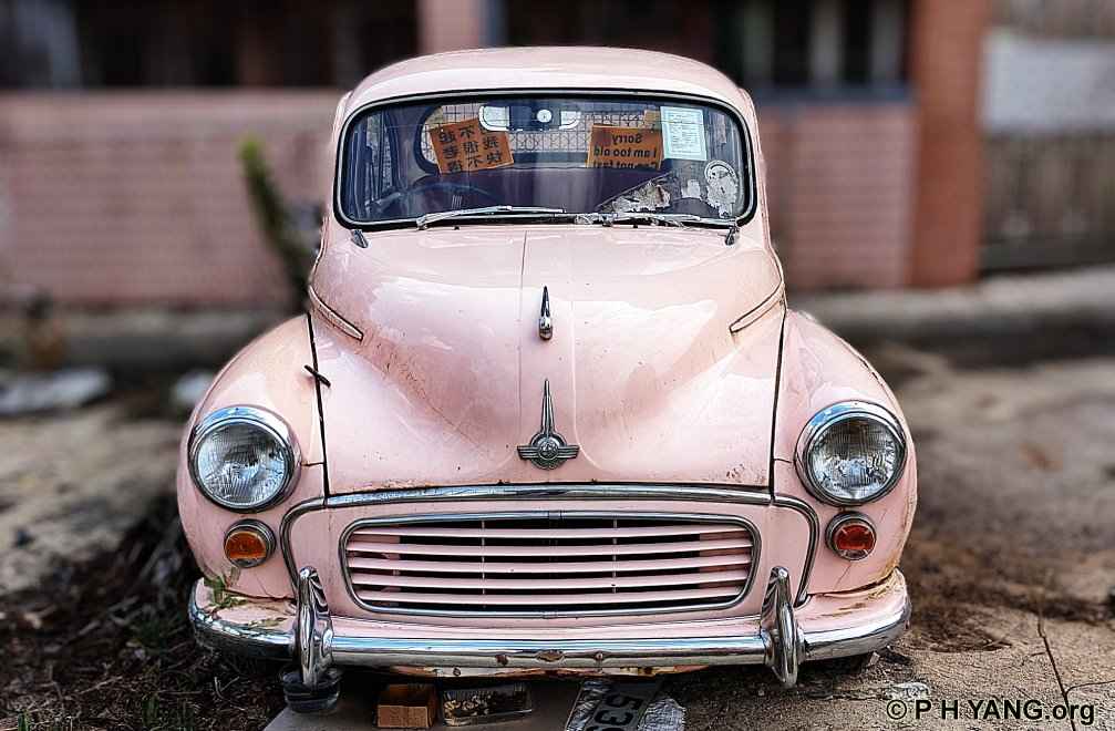 This 1964 pink Morris Minor 1000 is designed like a love bug, complete with