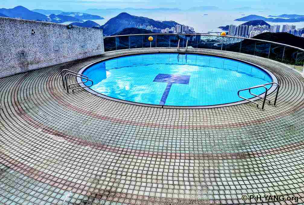 The rooftop pool, perched atop a towering residential spire on The Peak, is a portal to peace.
